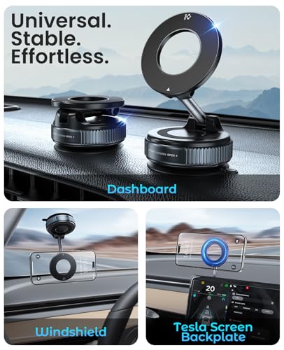 Magnetic Suction Cup Phone Mount for Magsafe, 360° Adjustable Magnetic Car Phone Holder, Pocket Size Foldable Car Mount, Cell Phone Holders for Your Car for iPhone 17 16 15 14 13 12 Series