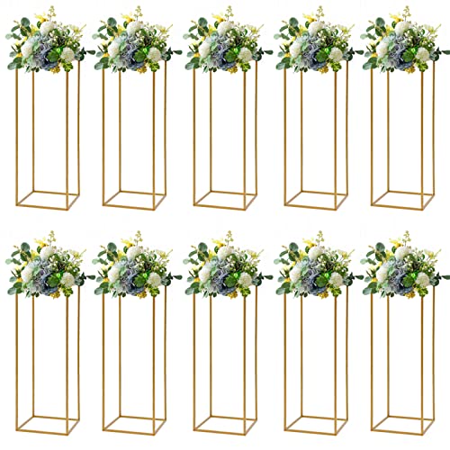 10 Pcs Gold Wedding Flower Vase, Metal Column Flower Holder, 32in/80cm Metal Geometric Centerpieces Vase for Table, Home Party Wedding Decorations Flower Stand