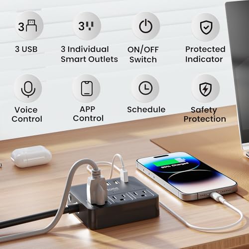Specification: GHome Smart Plug Power Strip Works with Alexa & Google Home – 3 Individually Controlled Smart Outlets Switches 3 USB Ports, 4FT Extension Cord, WiFi Power Strip, Multi-Plug Extender for Home Offices