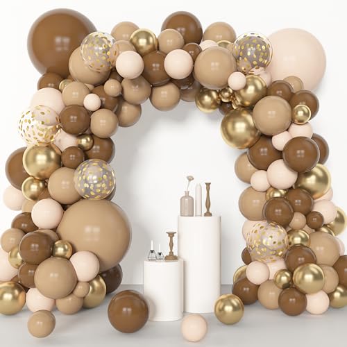 Specification: Amandir 153pcs Brown Balloon Garland Arch Kit, Different Sizes 18 12 10 5 inch Brown Nude Latex Metallic Confetti Gold Balloons for Neutral Bear Baby Shower Safari Birthday Party Decorations Supplies