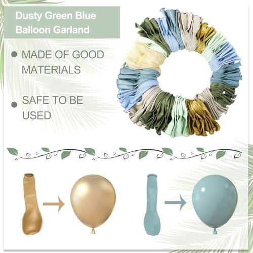Premium Quality: All of blue and green balloons are crafted of decent aluminum foil or strong latex, thick and long-lasting; Each balloon has been strictly tested and selected manually; Unlike ordinary balloons, they are more plump in color, do not explode, and can support all day parties; The sage green and dusty blue balloons can be filled with air or helium