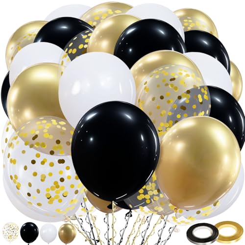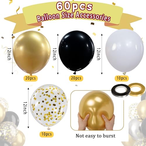 Black and Gold Balloons 60pcs 12Inch Metallic Gold Confetti Black White Latex Balloons for Birthday Graduation Decorations New Year Eve Festival Party Supplies