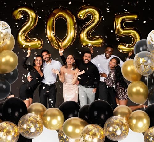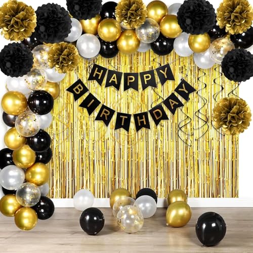 Specification: Black and Gold Balloons 60pcs 12Inch Metallic Gold Confetti Black White Latex Balloons for Birthday Graduation Decorations New Year Eve Festival Party Supplies