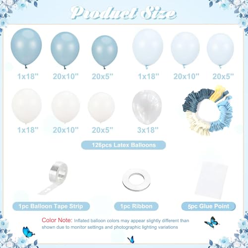 Dusty Blue Balloon Arch Kit 126 Pcs Light Blue and White Balloon Arch Garland Kit Include Macaron Balloons for Wedding Birthday Baby Shower Gender Reveal Bridal Decorations