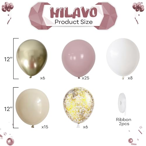 Dusty Pink and Gold Balloons Set, 60Pcs 12 Inch Retro Blush Pink White Sand Beige Metallic Gold Latex Balloon with Gold Confetti Boho Balloon for Birthday Baby Bridal Shower Wedding Party Decorations
