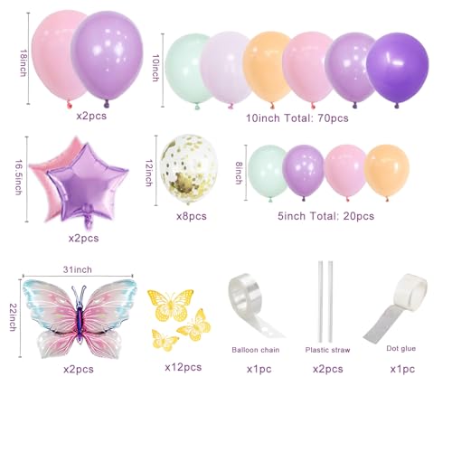 Specification: Pink and Purple Butterfly Balloon Arch Garland Kit, Big Butterfly Decorations, Birthday Baby Shower Wedding Fiesta Party Decorations for Girls