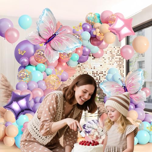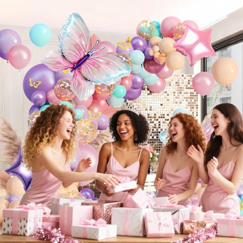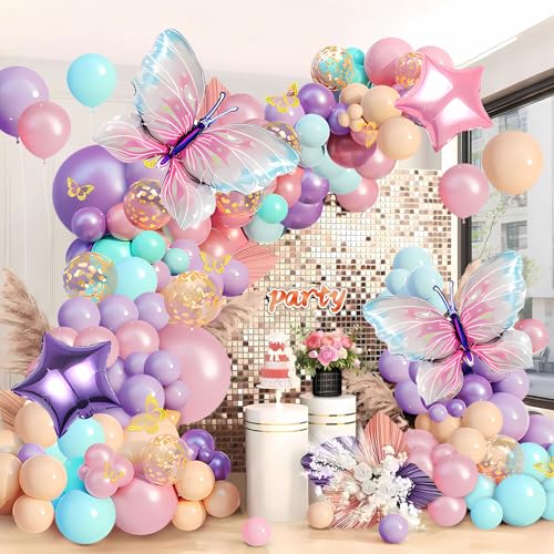 Pink and Purple Butterfly Balloon Arch Garland Kit, Big Butterfly Decorations, Birthday Baby Shower Wedding Fiesta Party Decorations for Girls