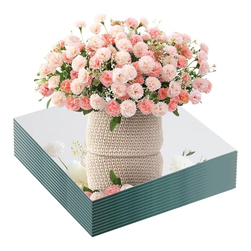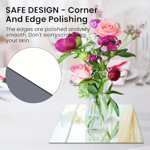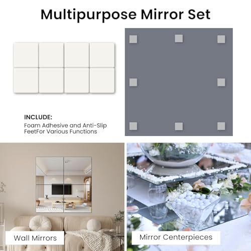 【HIGH QUALITY MATERIAL】: 12Pcs square mirror table centerpieces have cushioned feet on the back, stable to display candles, flowers on weddings, and parties, with no scratch to the table surface. Feet can be removed so they can be hung as Square wall decor mirrors.
