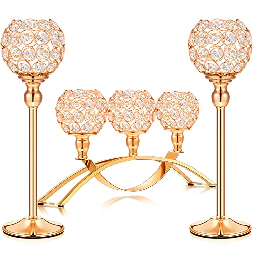 Specification: Set of 3 Pieces Gold Crystal Candle Holders, Tealight Candlestick Candelabra Stand with 3 Arms, Decorative Table Centerpieces Fireplace Home Living Room Decor for Wedding Housewarming Anniversary