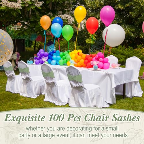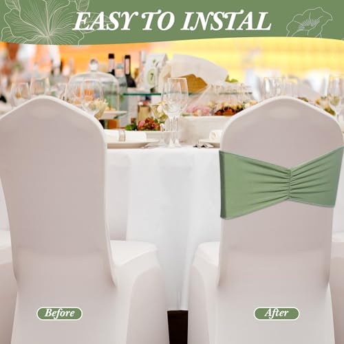 Specification: Moukeren 100 Pcs Spandex Chair Sashes Bows Bands Slider Sashes for Chair Covers Elastic Bands Ties Ribbon Decorations for Wedding Party Events Ceremony Birthday Banquet(Sage Green)