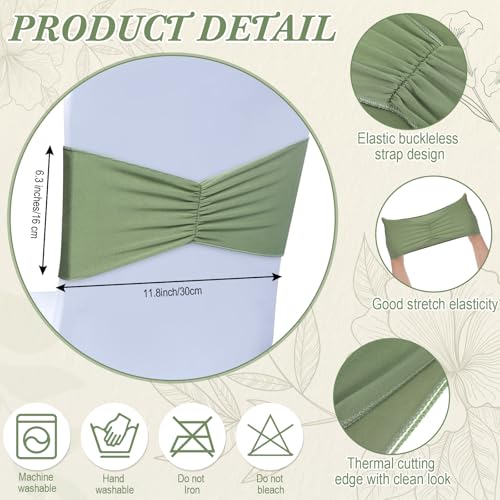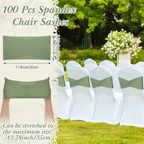 Moukeren 100 Pcs Spandex Chair Sashes Bows Bands Slider Sashes for Chair Covers Elastic Bands Ties Ribbon Decorations for Wedding Party Events Ceremony Birthday Banquet(Sage Green)
