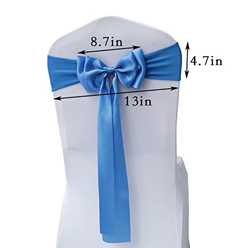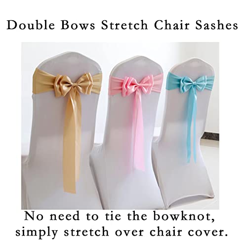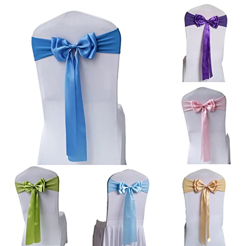 Pack of 6 Chair Sashes Spandex Chair Bands Satin Chair Sashes Chair Ribbons Bows Stretch Chair Sashes for Wedding Party Events Banquet Hotel Home Kitchen Chair Cover Decoration(6 PCS Lake Blue)