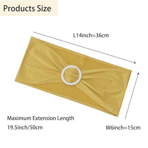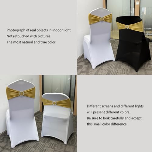 Spandex Chair Sashes Bands 50PCS Stretch Chair Ties Bows with Buckle Slider for Wedding Party Banquet Decoration (Gold)…