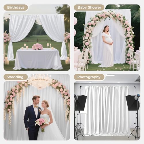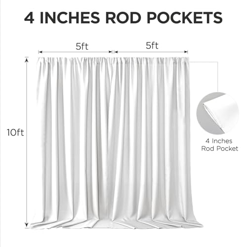 Specification: Joydeco White Curtains Backdrop for Wedding Parties, Photo Backdrop Curtains for Wedding Decorations Birthday, Wrinkle Free Polyester 5ft x 10ft Fabric Drape 2 Panels with Rod Pockets