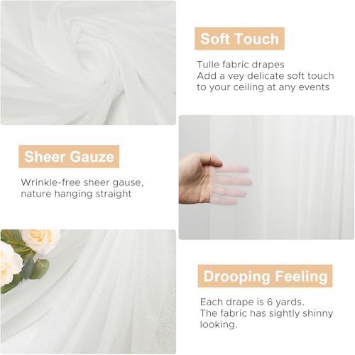 【Soft Wedding Drapes】Sheer drapes for wedding arch decor are made of polyester fabric, touch silky soft. These white arch draping fabric is lightweight, easy to hang vertically with natural sagging, wrinkle-free, durable and reusable.