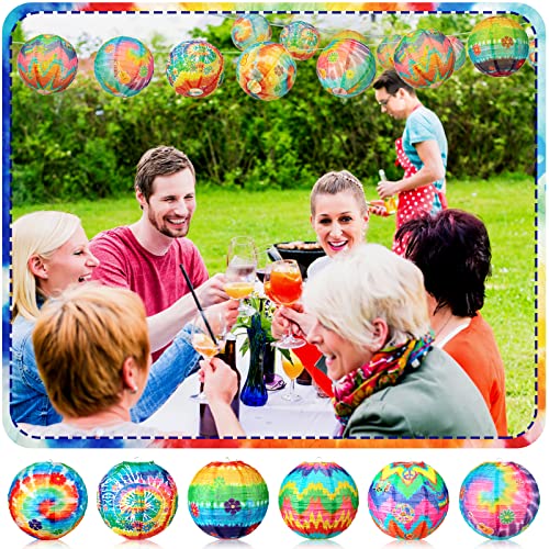 Panelee 12 Pcs Paper Lanterns Party Decorations 8 Inch Hanging Round Hanging Paper Party Decorations for Holiday Indoor Outdoor Supplies (Tie Dye)
