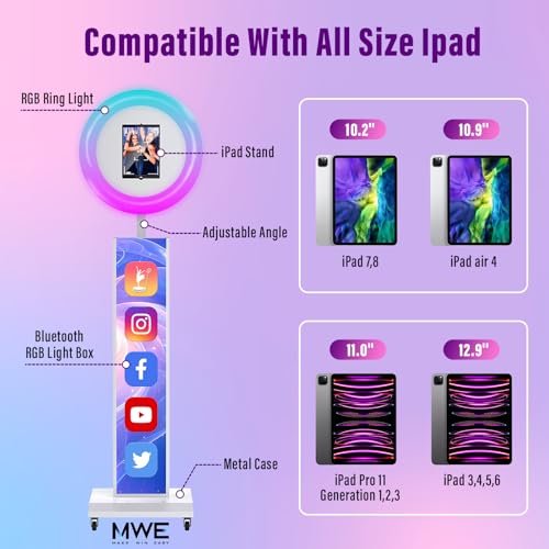 【Multi-Function iPad Photo Booth】: ipad photo booth used for photo and video shooting, it can help You-tubers/Selfie Lovers/artists/Social Platforms/Tik-Tok Streamers create incredible images, videos,which is suitable for parties, large events, weddings, Christmas shows, exhibitions, professional photography, streaming media, video blogs.Manufacturer:Marvel Technology CO.,LTD