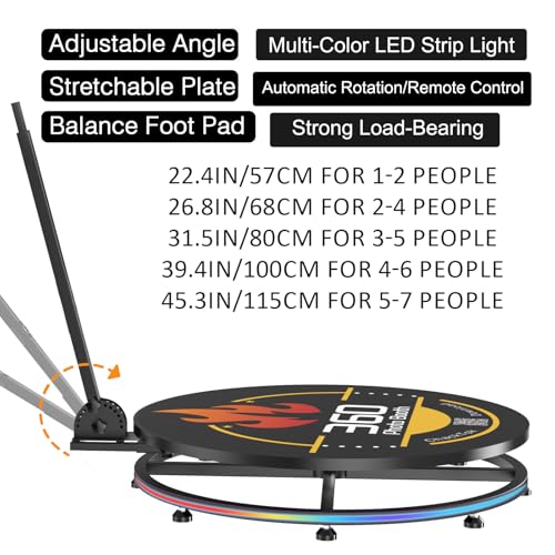 Specification: MWE 360 Photo Booth Machine for Parties with Flight Case,RGB Strip Light,Software APP Remote Automatic 360 Spin Camera Video Booth for 3-5 People (31.5”+Flight Case)