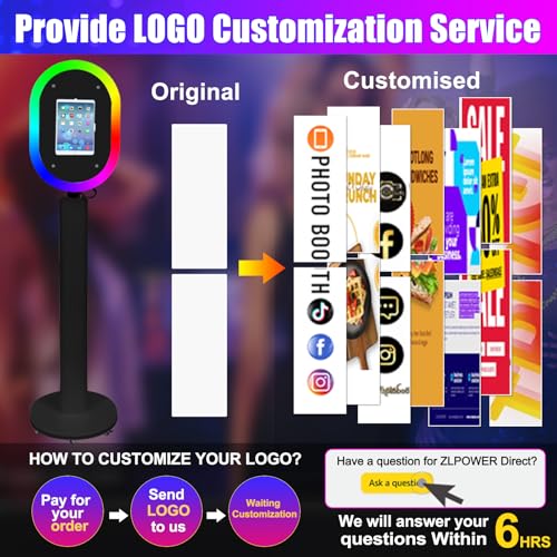 📲【WHERE TO CUTOMIZE YOUR LOGO?】ZLPOWER photo booth with LOGO.YOUR FIRST CUSTOMIZED LOGO is every photo booth order after payment from ZLPOWER, please provid the clear logo file (support AI PSD CDR PNG JPG ).You can customize your brand logo on your photo booth so that you can promote your advertisement.The installation is very simple and can be completed in just 1 minute.We also include 1 Year Limited Warranty included.