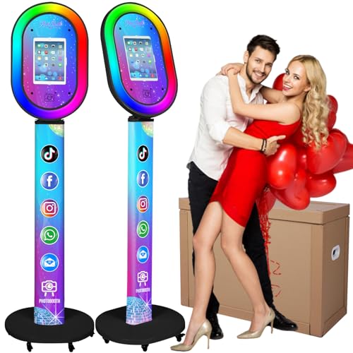 Photo Booth for iPad 10.2” 10.5” 10.9″ 11″ 12.9″ 13″ Shell Stand Selfie Station Customized Logo Photobooth Machine with Beauty RGB Ring Light and Honeycomb Box for Events Wedding Parties