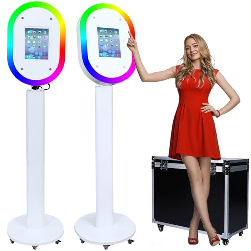 Specification: Portable Photo Booth for iPad 10.2″ 10.5″ 10.9″ 11″ 12.9″ 13″,Metal Shell Selfie Station photobooth Machine,RGB Ring Light,Custom Logo,for Parties Wedding Rental (White with Flight Case)