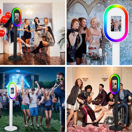 Portable Photo Booth for iPad 10.2″ 10.5″ 10.9″ 11″ 12.9″ 13″,Metal Shell Selfie Station photobooth Machine,RGB Ring Light,Custom Logo,for Parties Wedding Rental (White with Flight Case)