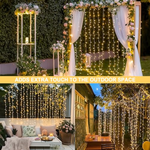 JMEXSUSS 300 LED Remote Control Curtain Lights, Plug in Fairy Curtain Lights Outdoor, Wall Hanging String Lights Indoor for Bedroom Window Dorm Backdrop Wedding Party Patio Christmas Decor, Warm White