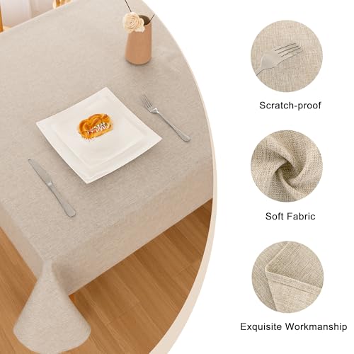 Hiasan Faux Linen Rectangle Tablecloth – Wrinkle and Stain Resistant Washable Table Cloth for Kitchen Dining Room Holiday Table Cover for Party Dinner, Beige, 54 x 80 Inch