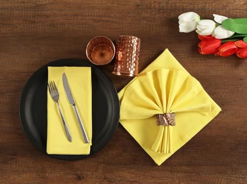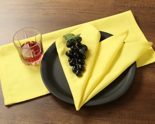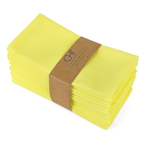 Natural Cotton Linen Napkin Set of 12 18×18 inch Dinner Napkins – Washable Soft Premium Hotel Quality Reusable Hemmed Edges Napkins Perfect Table Linens for Family Dinners, Weddings CHT (Lemon)