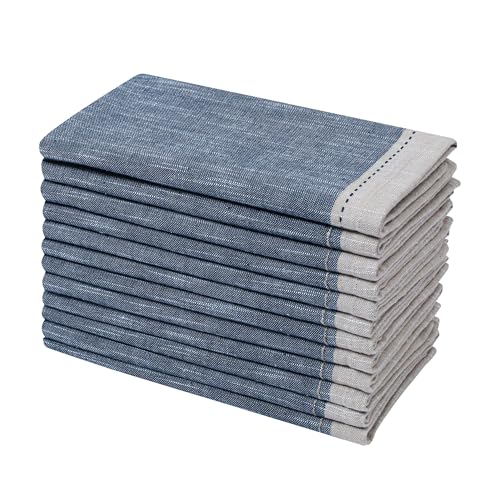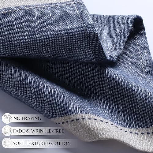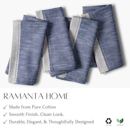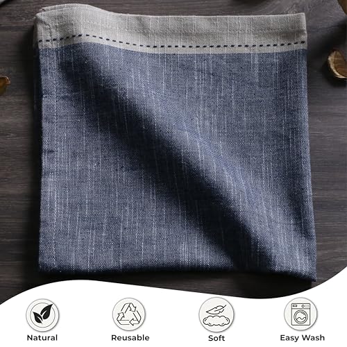 Ramanta Home Cloth Napkins Set of 12 Textured Cotton 18×18 – Premium Contrast Border Thanksgiving Dinner Napkins for Christmas Farmhouse Wedding, Soft Washable Table Linen for Everyday Use- Denim Blue