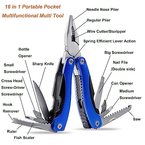 Multi Tool, Multitool Pliers for Outdoor, DIY, Home, Garden, Camping, Survival, Hunting and Hiking or Everyday Carry, Blue