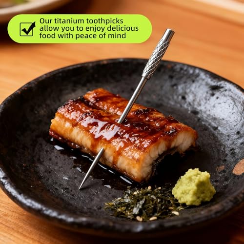 👉 Advantages: Titanium toothpicks are reusable, sturdy and durable and not easily broken. Unlike fragile wooden or plastic toothpicks. it is easy to carry and store and can serve you for a long time, bringing you many conveniences.