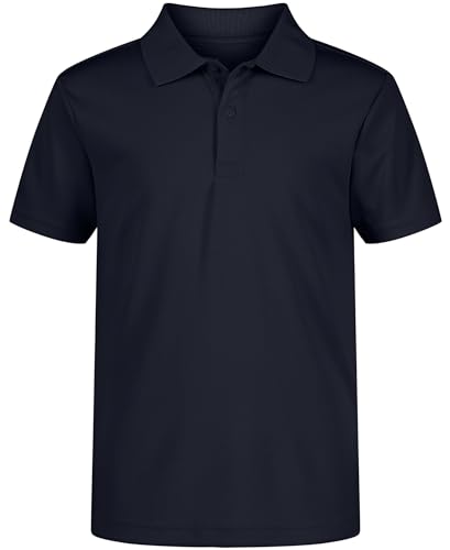 Nautica Boys’ School Uniform Short Sleeve Polo Shirt, Button Closure, Moisture Wicking Performance Material