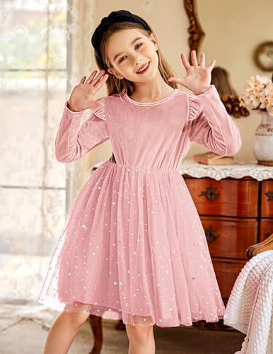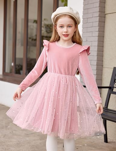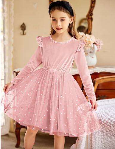 Arshiner Toddler Tutu Dresses Little Girls Velvet Tulle Fall Winter Long Sleeve Ruffle Holiday Party Dress 2-6Y