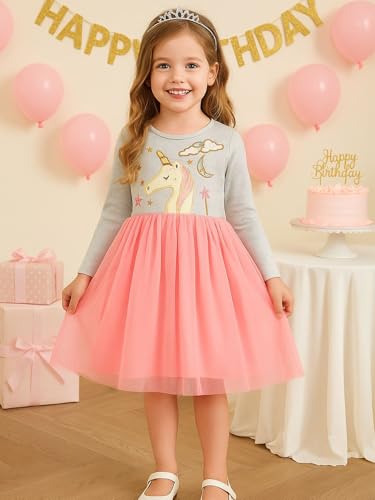 HILEELANG Toddler Girl Christmas Dress Long Sleeve Fall Winter Cotton Casual BasicTunic Shirt Dresses