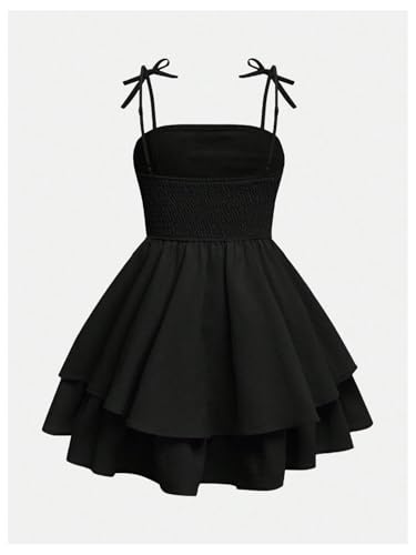 SHENHE Girl’s Smocked Ruched A Line Swing Dress Layered Tie Shoulder Flowy Cami Short Dress