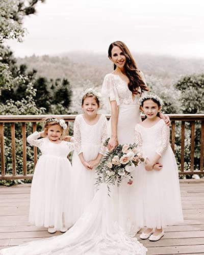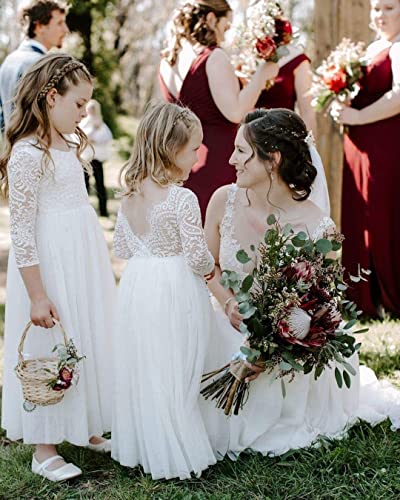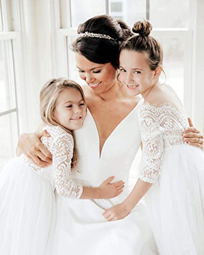 Topmaker Flower Girl Dress for Toddler Baby Girls,Lace Tulle Dress for Wedding,Birthday Party,Photoshoot,Special Occasion