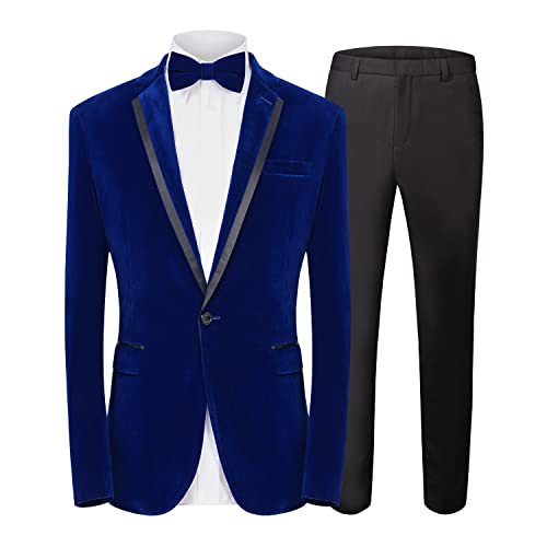 MAGE MALE Men’s 2 Piece Velvet Suit Peak Lapel One Button Slim Fit Tuxedo Blazer Party Dinner Jacket & Pants