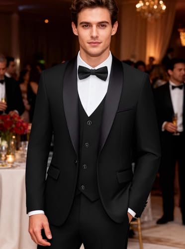Specification: WULFUL Men’s 3 Piece Suits Slim Fit Tuxedo Suit Set One Button Shawl Lapel Blazer Jacket Vest Pants Set for Prom, Business