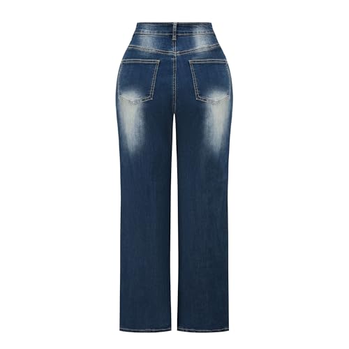 THUNDER STAR Womens High Waisted Wide Leg Jeans Stretchy Distressed Denim Pants