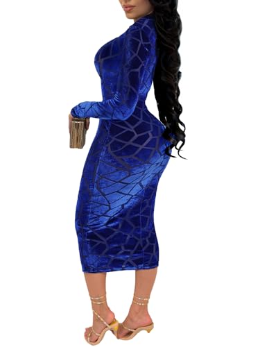 Specification: Uni Clau Women Sexy Sheer Mesh Boydcon Midi Dress See Through Printed Long Sleeve Midi Skinny Clubwear Party Dress