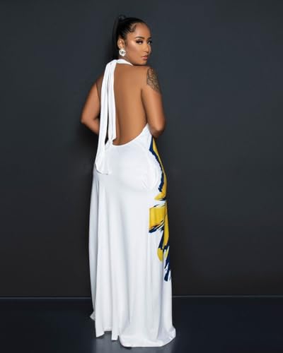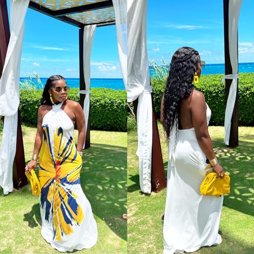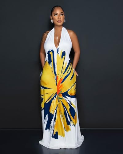 Womens Sexy Summer Dresses Halter Neck Plus Size Long Maxi Dress Casual Floral Beach Sun Dresses with Pockets