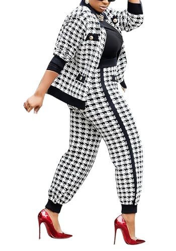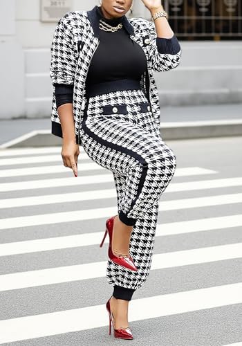 LKOUS Women’s Winter 2025 2 Piece Vintage Houndstooth Set, Button Blazer & Matching Pants Office Work Casual Outfit