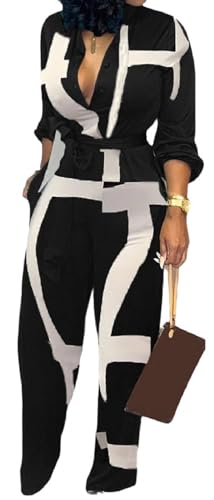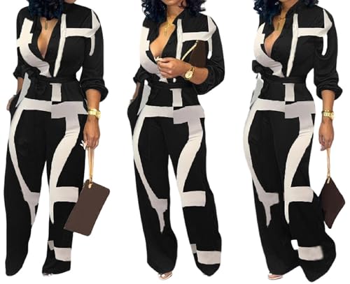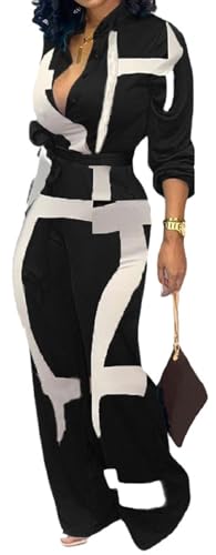 Specification: SeNight Women’s Jumpsuits Elegant Business Casual Button Down V Neck Long Sleeve Strap Straight Long Pants With Pockets