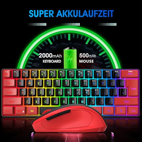 Snpurdiri 2.4G Wireless Gaming Keyboard and Mouse Combo, Include Mini 60% Merchanical Feel Keyboard, Ergonomic Vertical Feel Small Wireless Mouse(Red and Black)