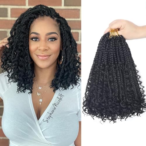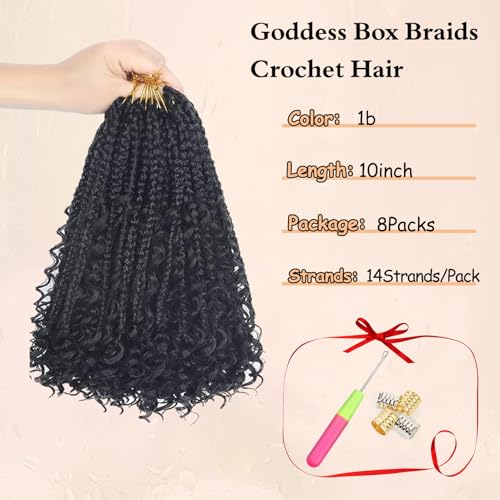 Specification: 10 Inch Boho Box Braids Crochet Hair Pre Looped 1B – Goddess Box Crochet Hair with Curly Ends, 8 Packs Crochet Braids for Black Women Synthetic Hair Extensions