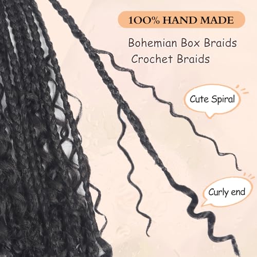 【3X Braids Crochet Hair with Curly Ends Feature】: Easy to install, this Boho Box Braids Crochet Hair is Pre-looped and Pre-twisted, so easy to pull the Box Crochet Braids through, Time-Saving and Cost-Effective