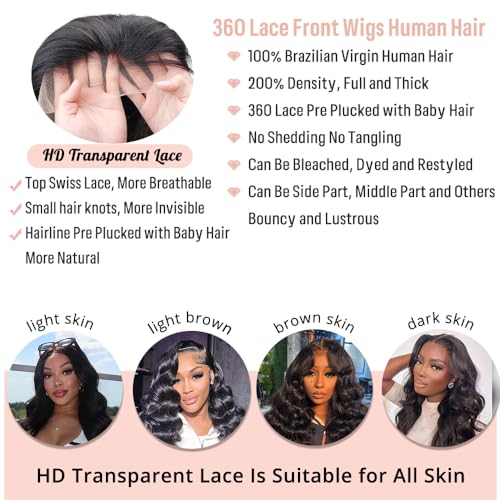 Specification: 360 Lace Front Wigs Human Hair Body Wave 200% Density 18 Inch Upgraded Hidden Straps 360 HD Full Lace Wigs Human Hair With Drawstring Pre Plucked With Baby Hair for Women Natural Black