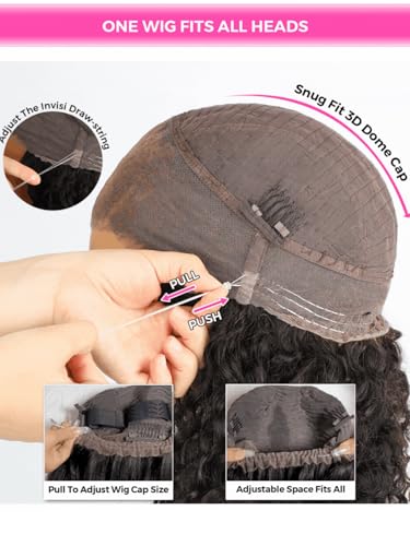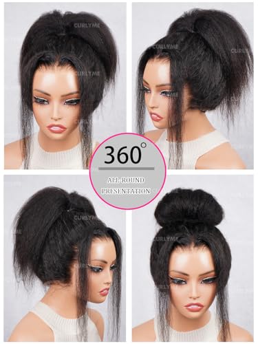 Specification: 360 Curlyme Full Lace Front Wigs Human Hair Invisible Strap Pre Plucked Bleached Knots Pre Cut Skin Lace Kinky Straight Lace Frontal Wig Natural Hairline 360 Drawstring Glueless Wigs 18 Inch