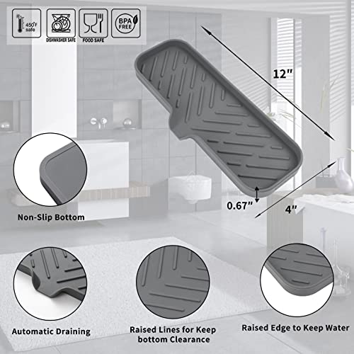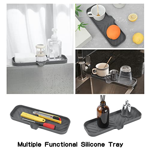 Silicone Bathroom Soap Dishes with Drain Spout-Bathroom and Kitchen Sink Organizer,Sponge Holder,Dish Soap Tray,Perfect for Dispenser,Scrubber,Bottle,Cup on Sink or Counter-Grey 12″×4″